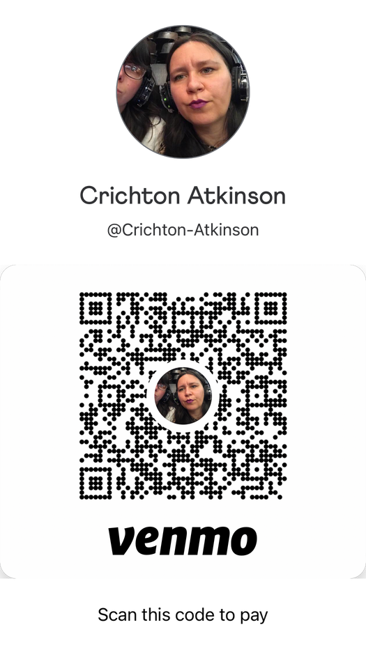 Make a direct donation to the director Crichton Atkinson. Contribute through Venmo via the code with the note Close at a Distance.